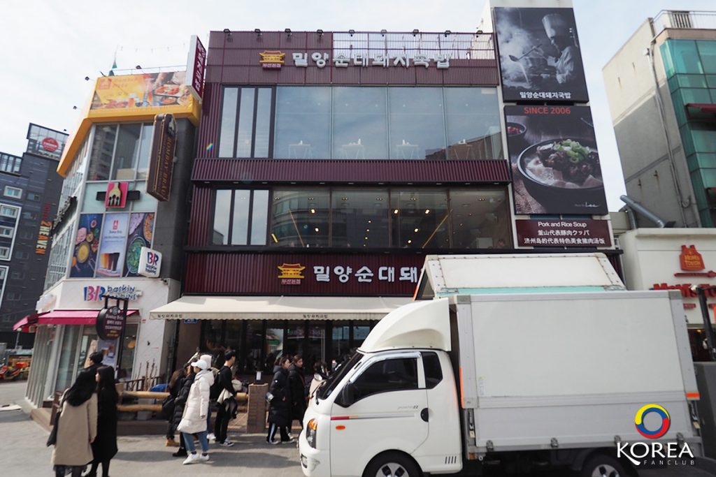 Milyang Sundae Dwaeji Gukbap มีหลายสาขาในปูซาน สาขาใหญ่ ก็อยู่นี่แหละครับ เป็น ร้านอาหารปูซาน ที่ลูกค้าเยอะตลอดทั้งวัน สาขา ชายหาด แฮอุนแด เป็นอาคารใหญ่ มีทั้งหมด 3 ชั้น รับลูกค้าได้ครั้งละ หลายร้อยคนเลย
