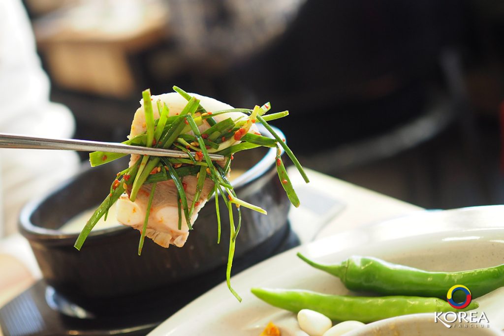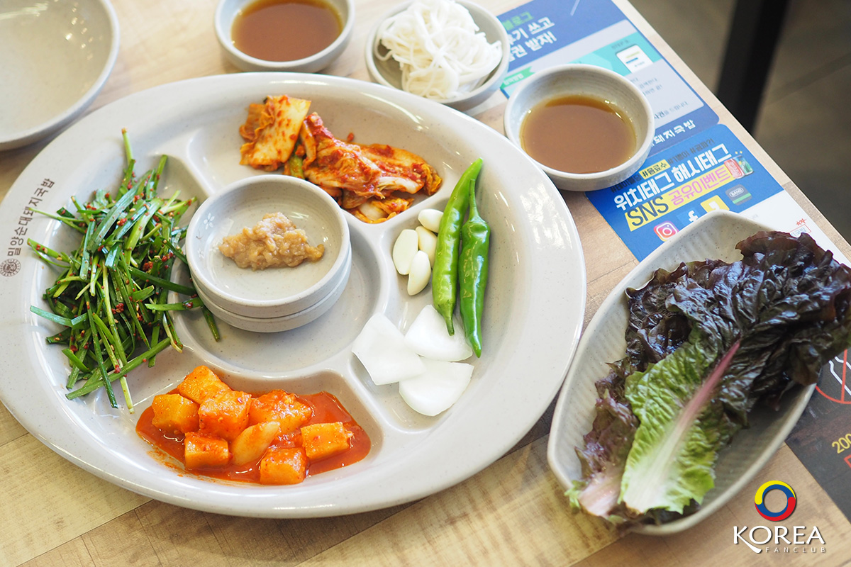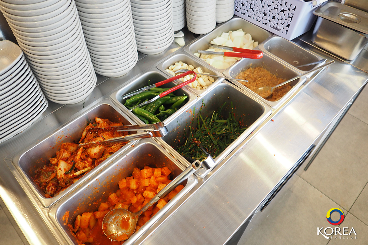 เสน่ห์ของอาหารเกาหลีคือ เครื่องเคียง หลากหลายและอร่อยมาก อย่างร้านนี้ก็จัด กิมจิ หัวไช้เท้ากิมจิ กุยช่าย หอมใหญ่ กระเทียม พริกเขียว และน้ำจิ้มต่างๆ