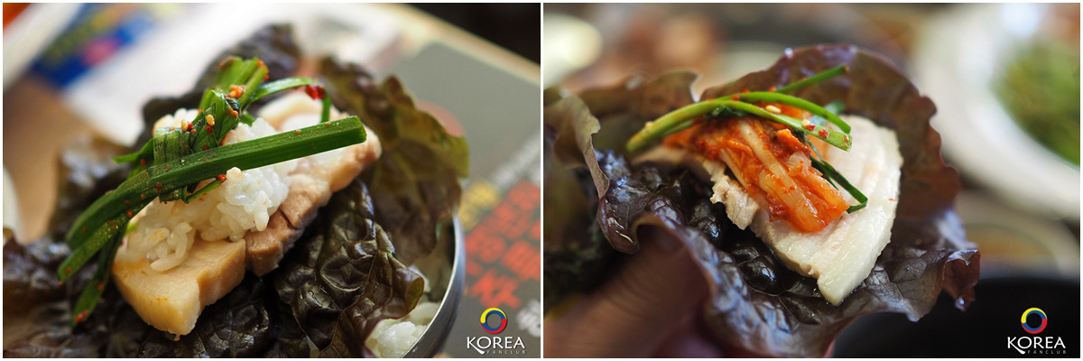 หมูชิ้น กินกับผักสด เครื่องเคียง กิมจิ อร่อย รสชาติเต็มปาก เค็มคำ ดีครับ อร่อยพอๆ กับ หมูย่าง ปูซาน เลยนะ