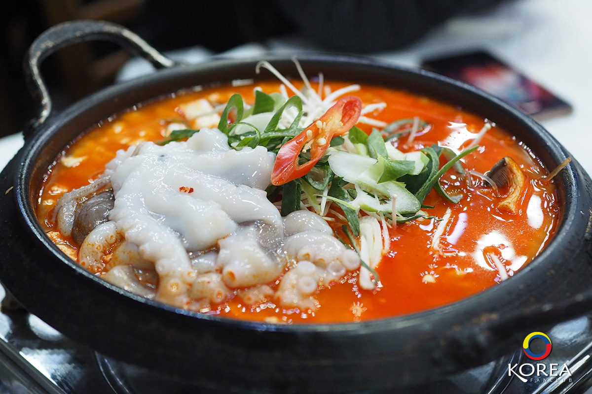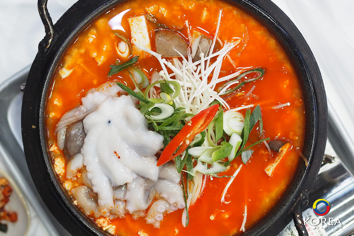 2. เต้าหู้หม้อไฟ หมึก แบบเผ็ด / ไม่เผ็ด ราคา ชุดละ 13,000 วอน ( ต้องสั่ง 2 ชุดขึ้นไป)