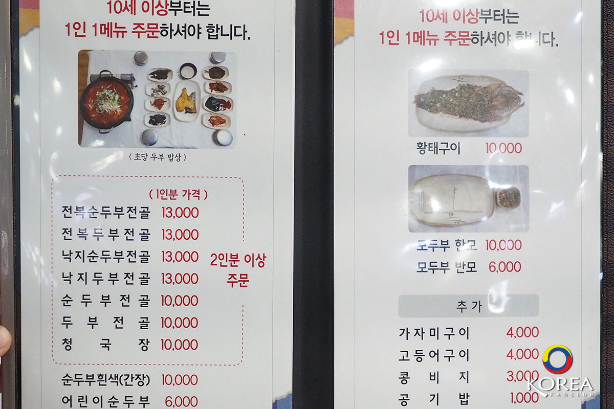 1. เต้าหู้หม้อไฟ หอยเป๋าฮื้อ แบบเผ็ด / แบบไม่เผ็ด ราคา ชุดละ 13,000 วอน ( ต้องสั่ง 2 ชุดขึ้นไป)