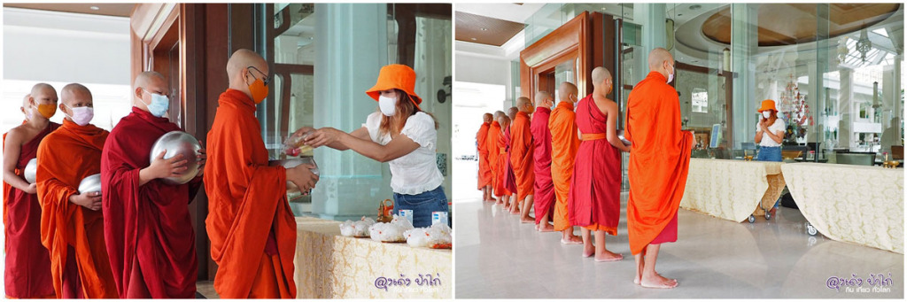 Dusit Thani Pattayaกิจกรรม ใส่บาตรพระสงค์ ทุกๆ 7 โมงเช้า จะมีพระภิกษุสงฆ์และสามเณร 9 รูป รับการถวายอาหาร ที่หน้า LOBBY