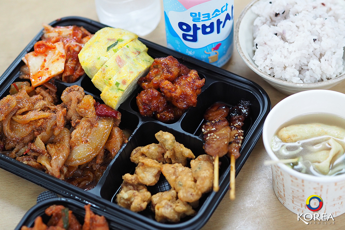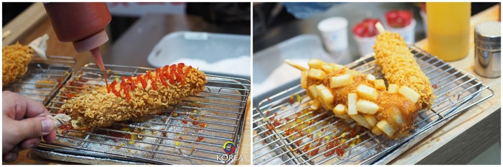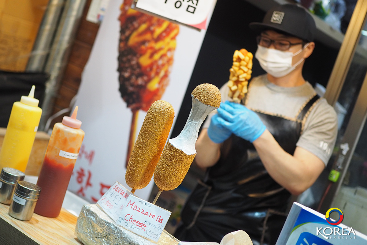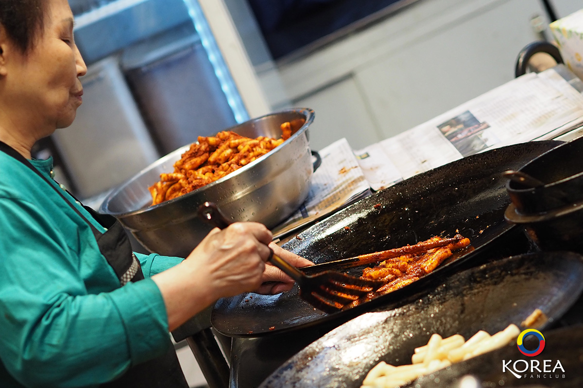 ส่วนมากจะเป็นอาหารพื้นเมือง กินง่าย ขายง่าย และเป็นที่นิยมของคนเกาหลี เช่น มันดู (เกี๊ยวเกาหลี) มีทั้งแบบทอด และแบบนึ่ง / ไข่ม้วนเกาหลี / ต๊อกโบกี / ต๊อกโบกีห่อเนื้อย่าง / คิบบับ หรือ ข้าวห่อสาหร่าย / พิซซ่าเกาหลี / ไก่ทอดซอสพริก / ผัดวุ้นเส้นเกาหลี / ต๊อกชุบแป้งทอด / โอเด้ง ออมุก อูด้ง และอื่นๆ อีกเพียบ