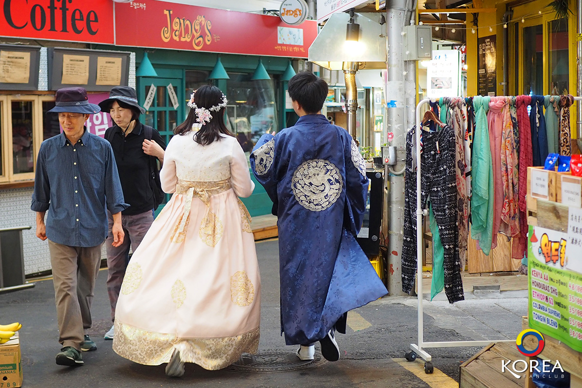 ด้วยความที่เป็น ตลาดโบราณ กลาง กรุงโซล เราก็จะเห็น น้องๆ เกาหลี แต่งตัวย้อนยุค มาเดินเลือกซื้ออาหารเช่นกันใน ตลาดโบราณทงอิน แห่งนี้