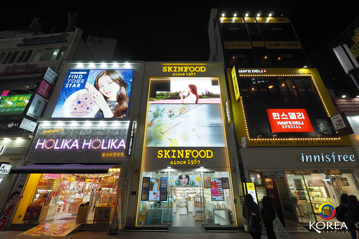 การเดินทาง : ถนนดงซองโน หรือ Dongseongno Street อยู่ติดกับ สถานี Jungangno ทางออก 1 (ถนนปิ้งย่าง) / ทางออก 2 (ถนนช้อปปิ้ง)