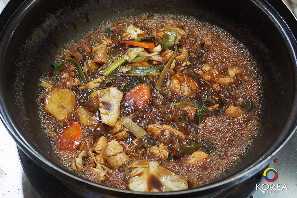 จิมดัก Jjimdak คือ ไก่ผัดวุ้นเส้นซอสเกาหลี รสเผ็ด เป็นอาหารขึ้นชื่อของเกาหลี และถูกปากคนไทยเป็นที่สุด