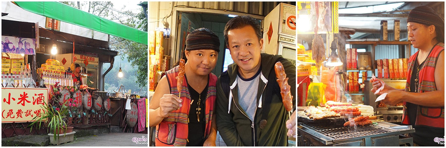 ระหว่างทางก็จะมีร้านขายกุนเชียงไต้หวัน ร้านนี้ใครไป ใครมาก็จะแวะซื้อกันตลอด เพราะเจ้าของร้านมีวิธีเรียกลูกค้าโดยการเอากุนเชียงตีกับเตาย่าง แล้วเกิดไฟลุกขึ้นมาให้ได้ตื่นตาตื่นใจ 555 ขายกันไม้ละ NT$ 35 เหรียญ (3 ไม้ NT$ 100)