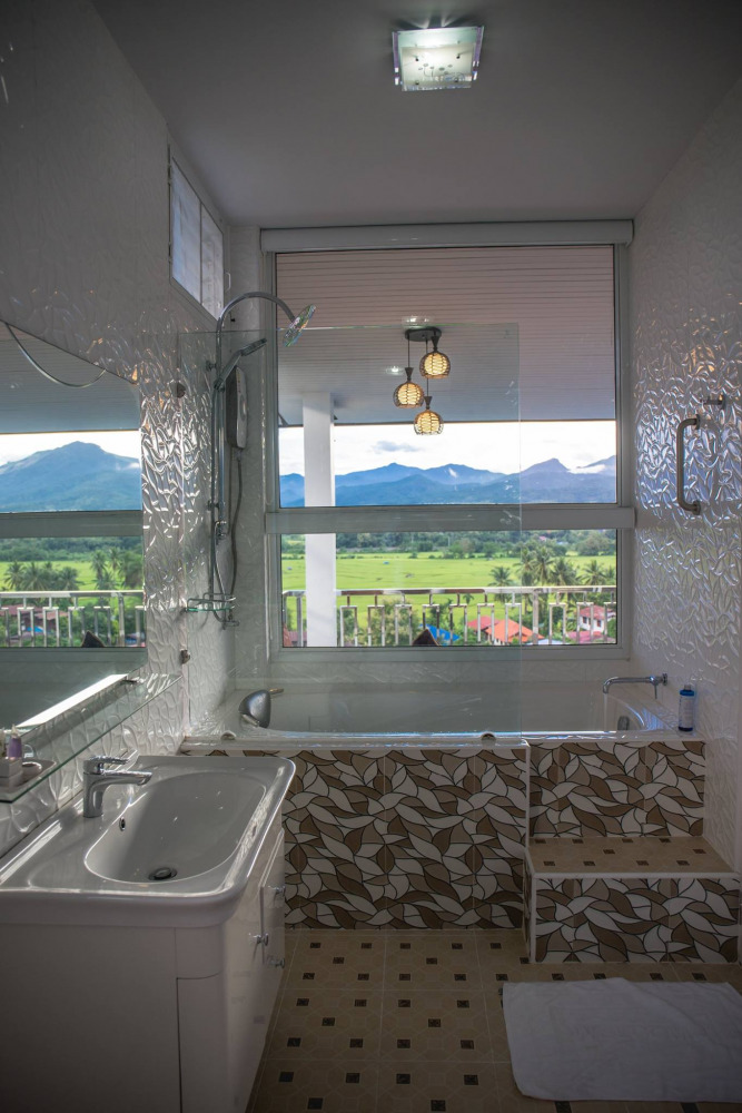 ถ้าใครอยากนอนแช่อ่างอาบน้ำชิลๆ ก็แนะนำเป็นห้อง C3 มีอ่างให้นอนแช่น้ำอุ่นคลายความเครียดได้เหมือนกันนะ ที่พักเงียบสงบ เหมาะกับการพักผ่อนจริงๆ โอบล้อมไปด้วยธรรมชาติไม่ว่าจะมาเที่ยวช่วงไหนก็ได้วิวสวยๆ ในแบบที่แตกต่างกันไปของช่วงฤดูกาล