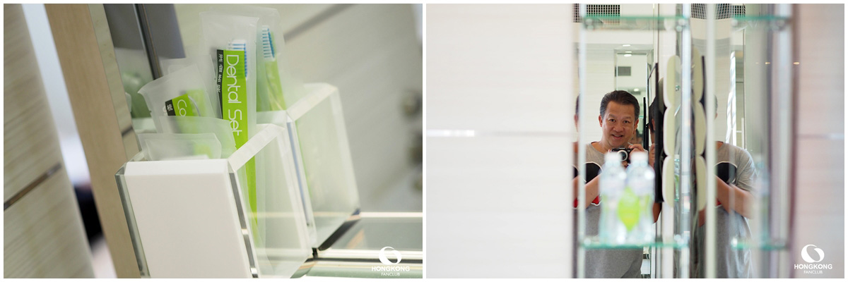 อ่างล้างหน้า 1 ชุด (ที่เห็นในภาพ คือสะท้อนกระจกนะครับ) อยู่ด้านนอก ... ใครตื่นก่อนก็ไปอาบน้ำ ใครตื่นทีหลังก็ล้างหน้า แปรงฟันไปก่อนได้ ที่สำคัญ ห้องสุขาก็แยกส่วนออกอีก 1 ส่วน ประมาณว่า ... ใครอยากทำไรเชิญเลย เพราะ ทุกอย่างแยกส่วนไว้หมดแล้ว