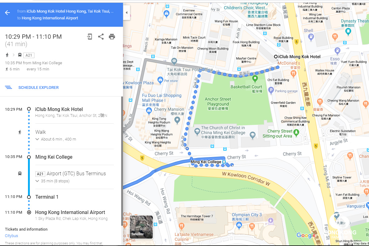 การเดินทางจาก สนามบิน -> ไอคลับ มงก๊ก iClub Mong kok รถเมล์สาย A21 คลิก https://goo.gl/maps/roJxnNWmD4DeK9je7