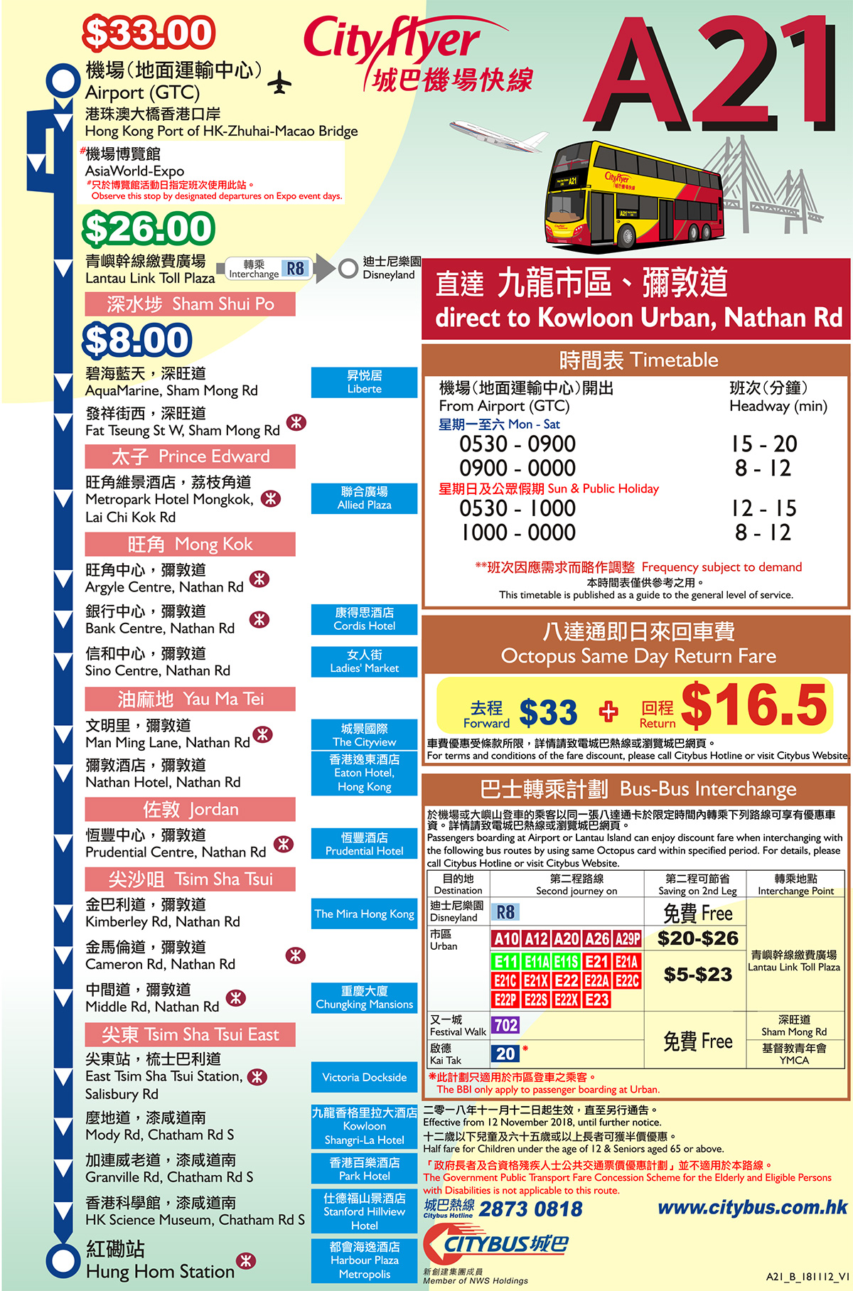 1. สนามบิน -> iclub Mong Kok นั่ง รถบัส A21 ลง ป้าย Argyle Centre ถนน Nathan Road เดิน 10 นาทีถึงโรงแรม