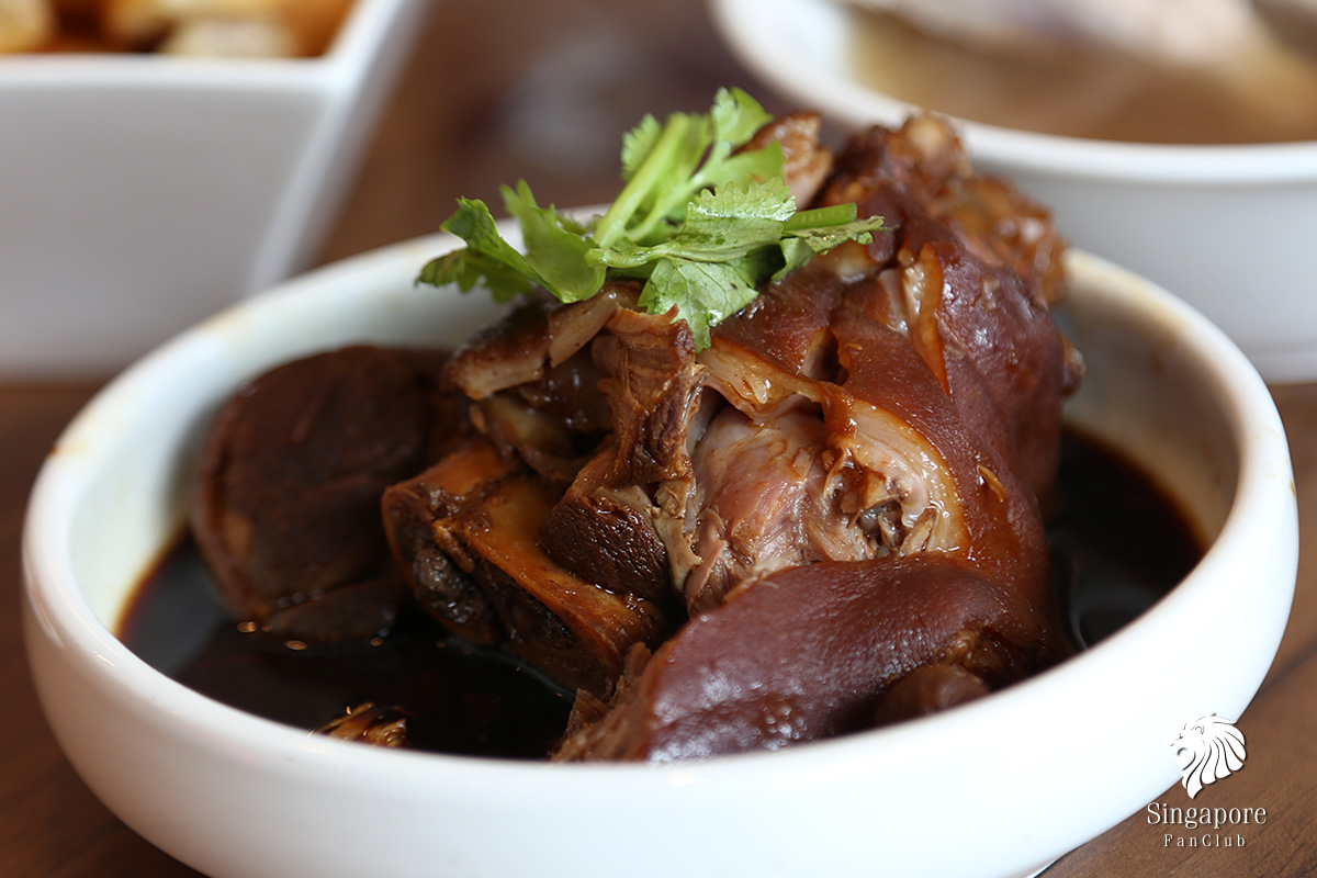 Pig's Trotter ข้อเท้าหมูต้มพะโล้ จานนี้ 9.80 เหรียญ รสชาติคล้ายๆ ขาหมูเมืองไทย แต่ไม่หวาน ใครชอบขาหมู มาลองกันได้ครับ เนื้อนุ่มกำลังกิน ส่วนที่เป็นเอ็นเคี้ยวอร่อยมากๆ