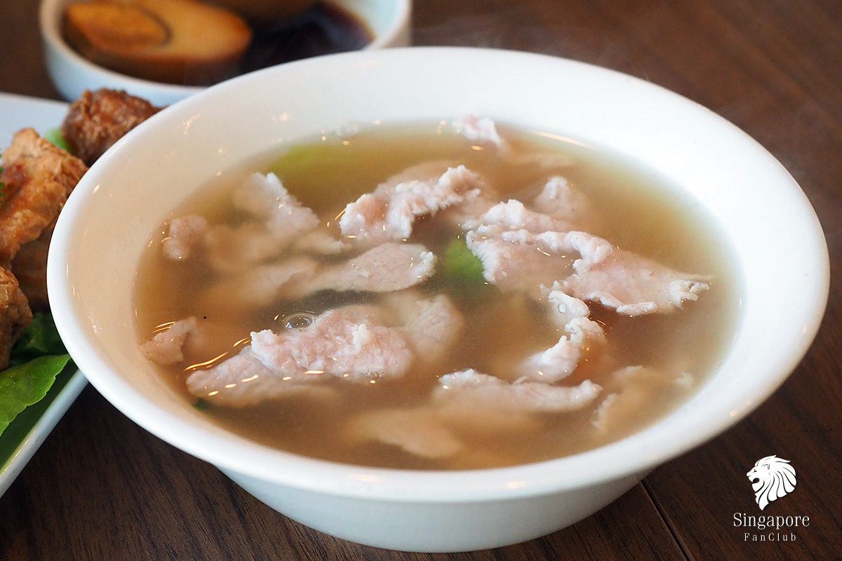 สาวๆ ที่ไม่อยากแทะซี่โครงหมู ก็มีเมนู หมูนุ่มบักกุ๊ตเต๋ ชามนี้ 7.8 เหรียญ เติมน้ำซุปได้ตลอดเช่นกันครับ