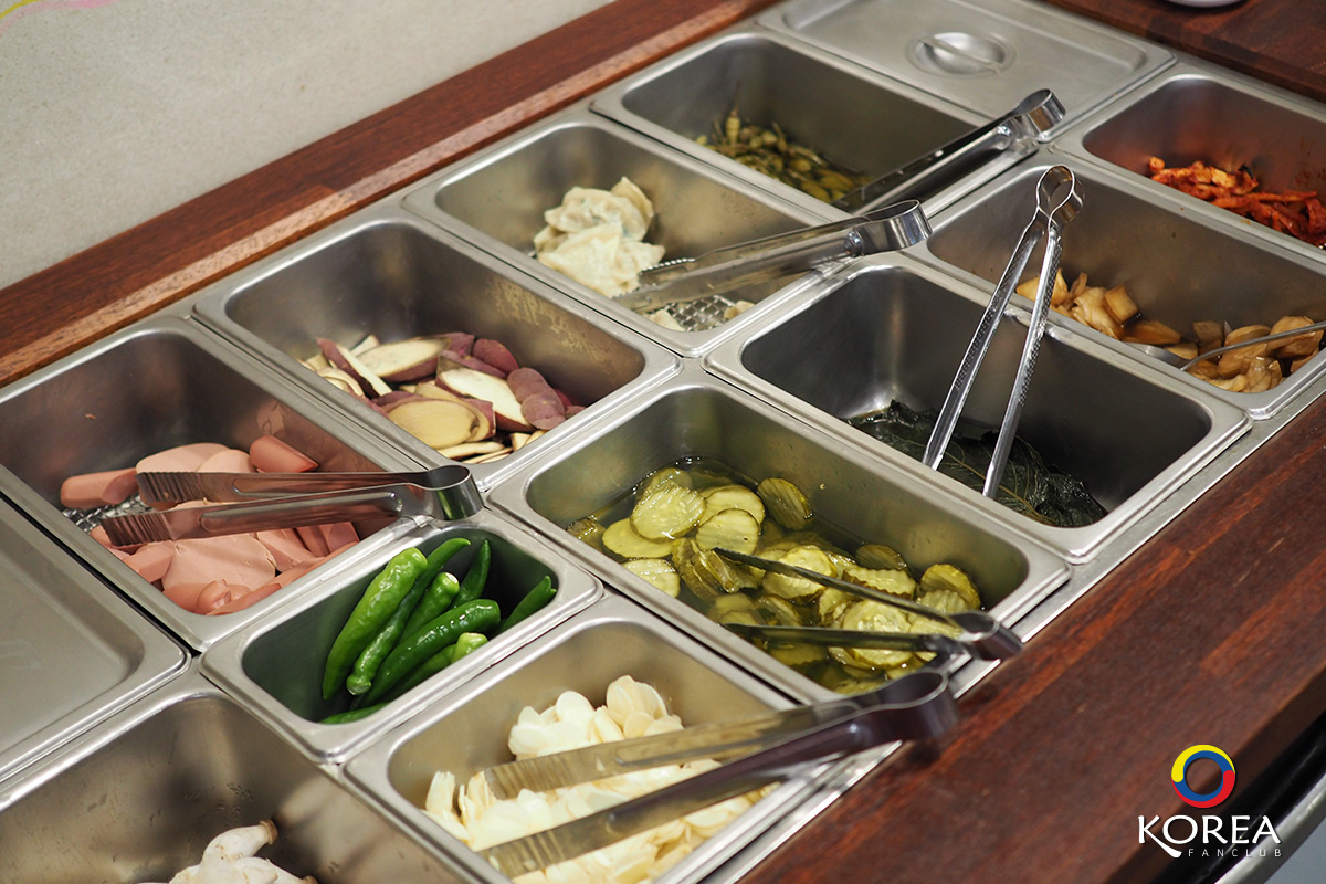 ค่าบุฟเฟ่ต์ คนละ 11,900 วอน สั่งเนื้อหมู + เกี๊ยวซ่า + เครื่องเคียง ทุกอย่างเติมได้ไม่จำกัด ( ข้าวเปล่า ถ้วยละ 1,000 วอน )
