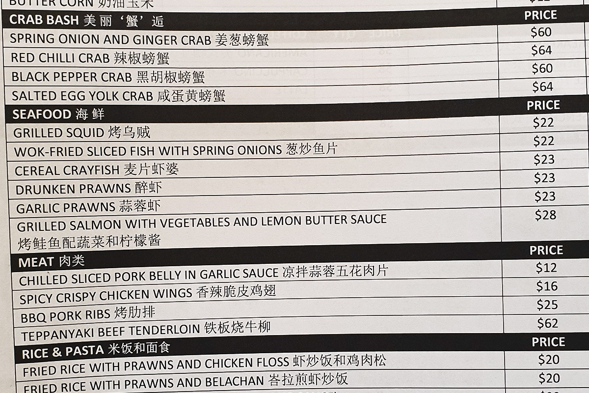 เมนูใหม่ ปูผัดไข่แดงเค็ม : Salted Egg Yolk Crab ราคา SG$ 64 เหรียญ