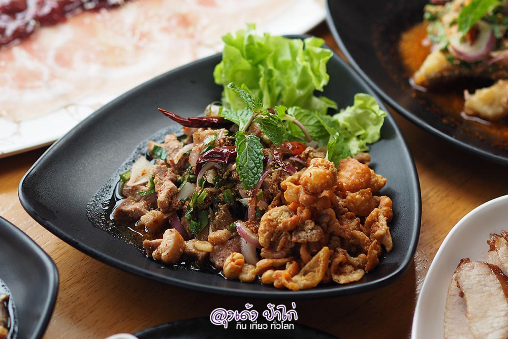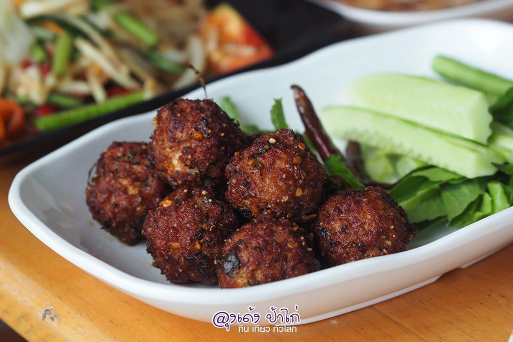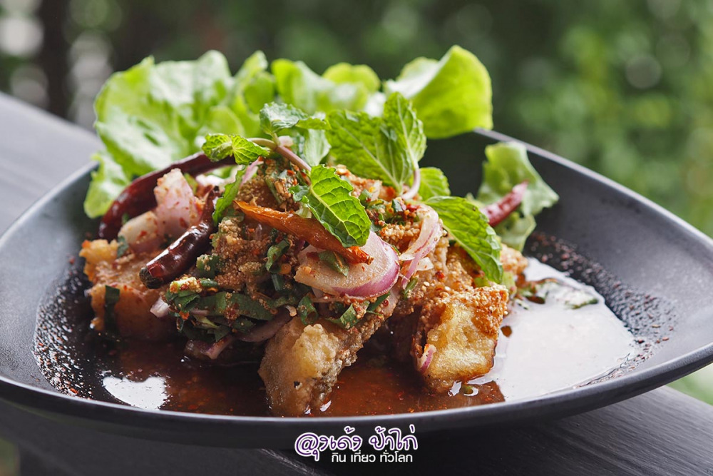 ลาบทอด เมนูโปรดของป้าไก่ ... สั่งมาเป็นของกินเล่น กินคู่กับแตงกวาสด และ ยอดคะน้า หอมข้าวคั่ว เผ็ดเล็กๆ ครบรสทุกคำ