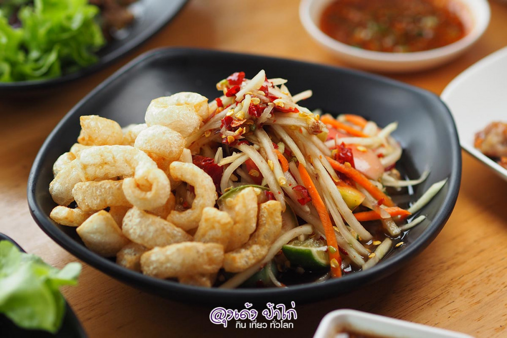 ส้มตำปูปลาร้าแคปหมู 83.-