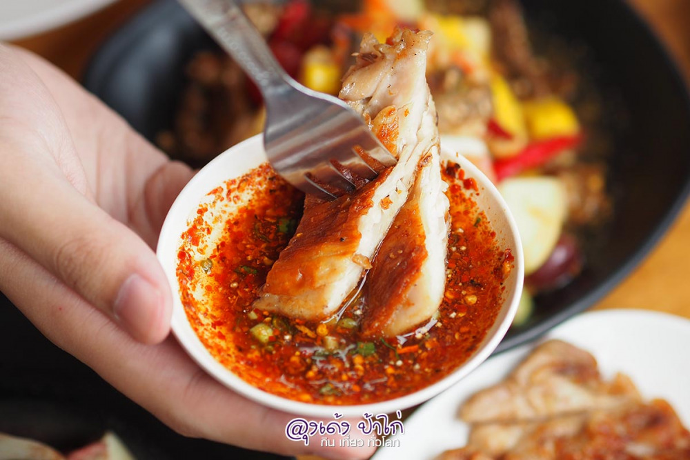ไก่ย่างหนังกรอบ ป้าแก้ว ต้องกินคู่กับ น้ำจิ้มแจ่ว ของทางร้าน เข้ากันที่สุด