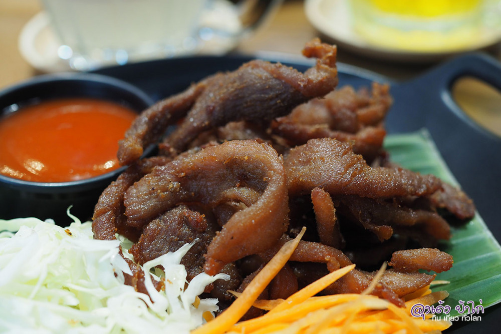 สายคอหมูย่าง ยังมีอีก 1 เมนู ทีต้องสั่ง คือ " หมู ตก ครก " หรือ ส้มตำ คอหมูย่าง เส้นมะละกอกรุบกรอบ กุ้งแห้งตัวใหญ่ รสชาติแซ่บนัว