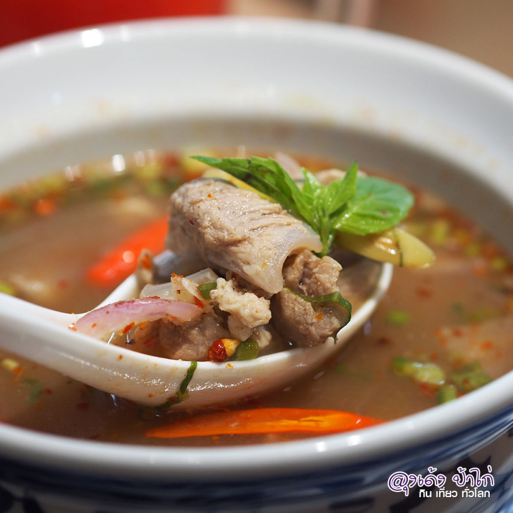 ต้มแซ่บกระดูกหมูอ่อน : ครบรส ซดคล่องคอ กระดูกหมูอ่อน ติดเนื้อ เคี้ยวอร่อยกรุบๆ