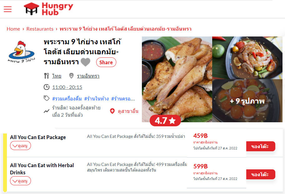 รีวิว พระราม 9 ไก่ย่าง บุฟเฟ่ต์ : พระราม9 ไก่ย่าง Hungry Hub