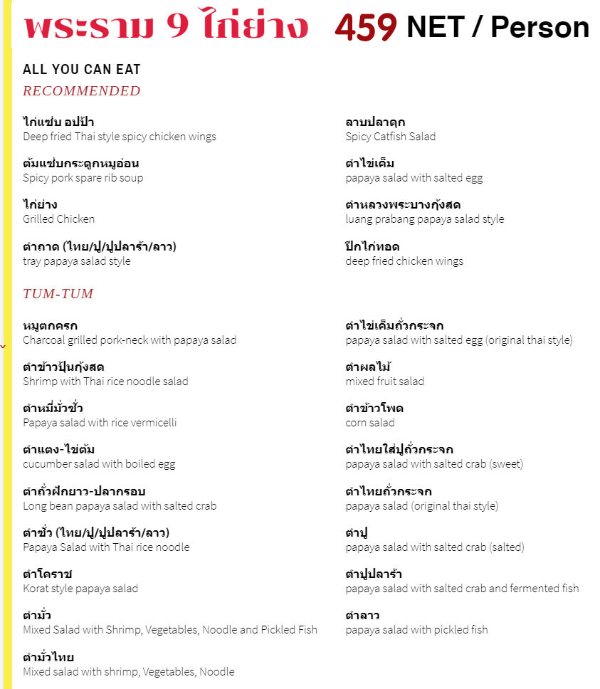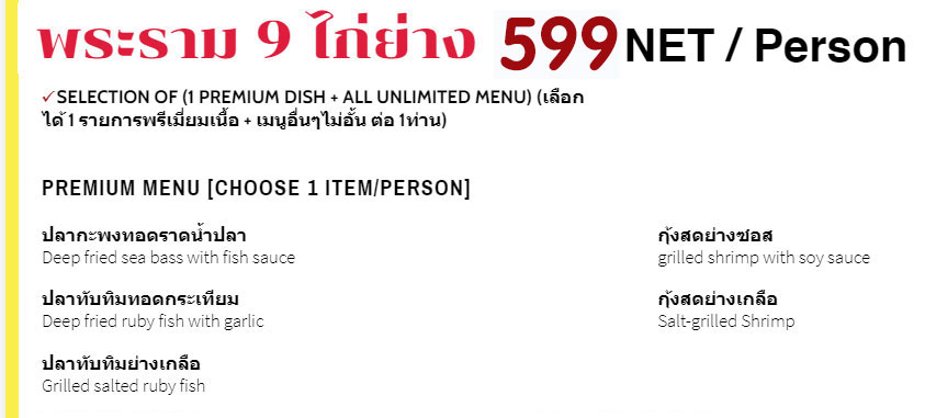 พระราม9 ไก่ย่าง บุฟเฟ่ต์อีสาน ราคา 459 และ 599 จองซะคุ้มสุด