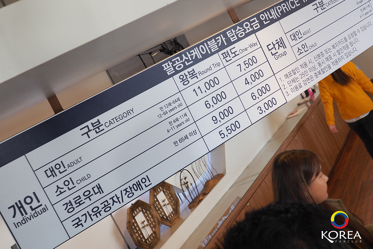 ผู้ใหญ่ (ไป-กลับ) 11,000 วอน / (เที่ยวเดียว) 7,500 วอน