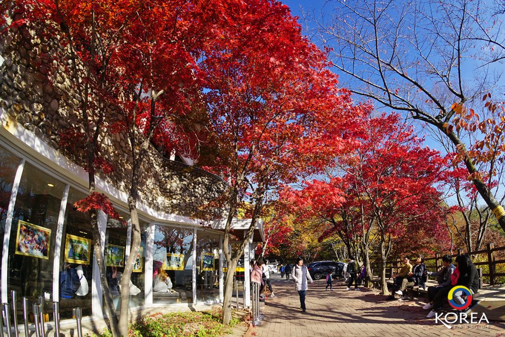 วิว ระหว่างทาง สวยงามครับ ช่วงที่ ลุงเด้งป้าไก่ ไปก็มีใบไม้เปลี่ยนสีให้เห็นกันพอสมควร อากาศบนเขาก็จะหนาวเย็นกว่าพื้นราบ ประมาณ 2 องศานะ เพราะฉนั้น ถ้าเพื่อนๆ เที่ยวเกาหลีช่วงหน้าหนาว ต้องเตรียมเสื้อกันหนาวไปให้พร้อมนะครับ