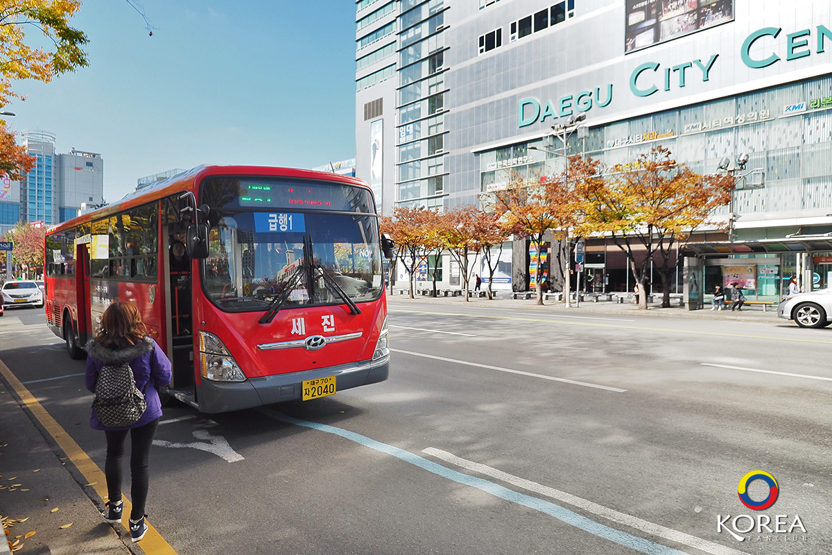 ป้าย 2.28 Central Memorial Park จะอยู่ตรงข้ามกับ Daegu City Center ... รอไม่นานครับ แป๊ปเดียวรถก็มาแล้ว