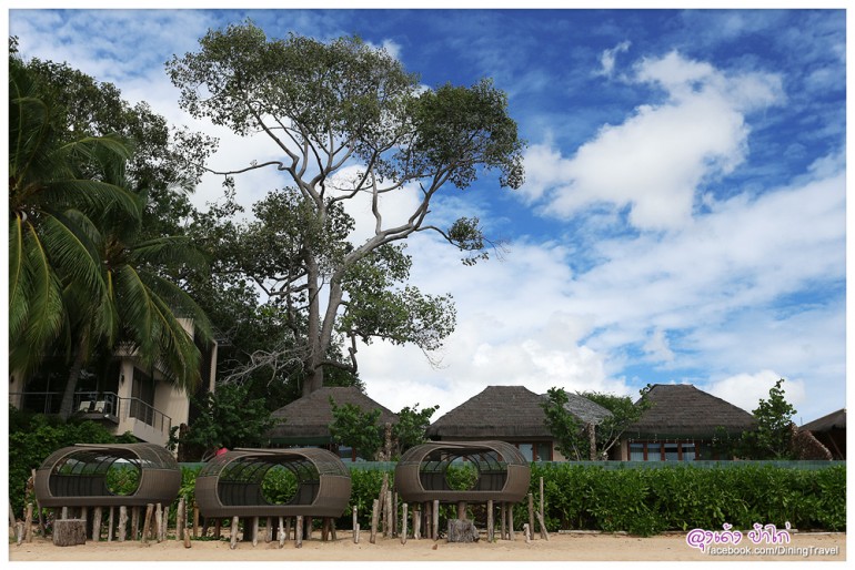 หน้าโรงแรมบนหาดทรายมี "ซุ้ม" ไว้นั่งชมทะเล สูดโอโซน ฟังเสียงคลื่น ยามพระอาทิตย์ลับขอบฟ้า จุดนี้ลุงเด้ง ป้าไก่ มาถ่ายรูปคู่สวยๆ ได้หลายใบเลยครับ