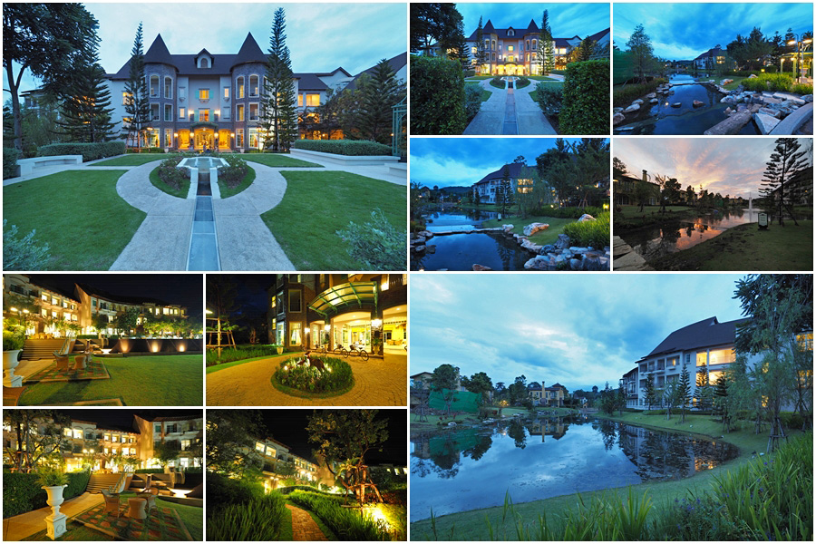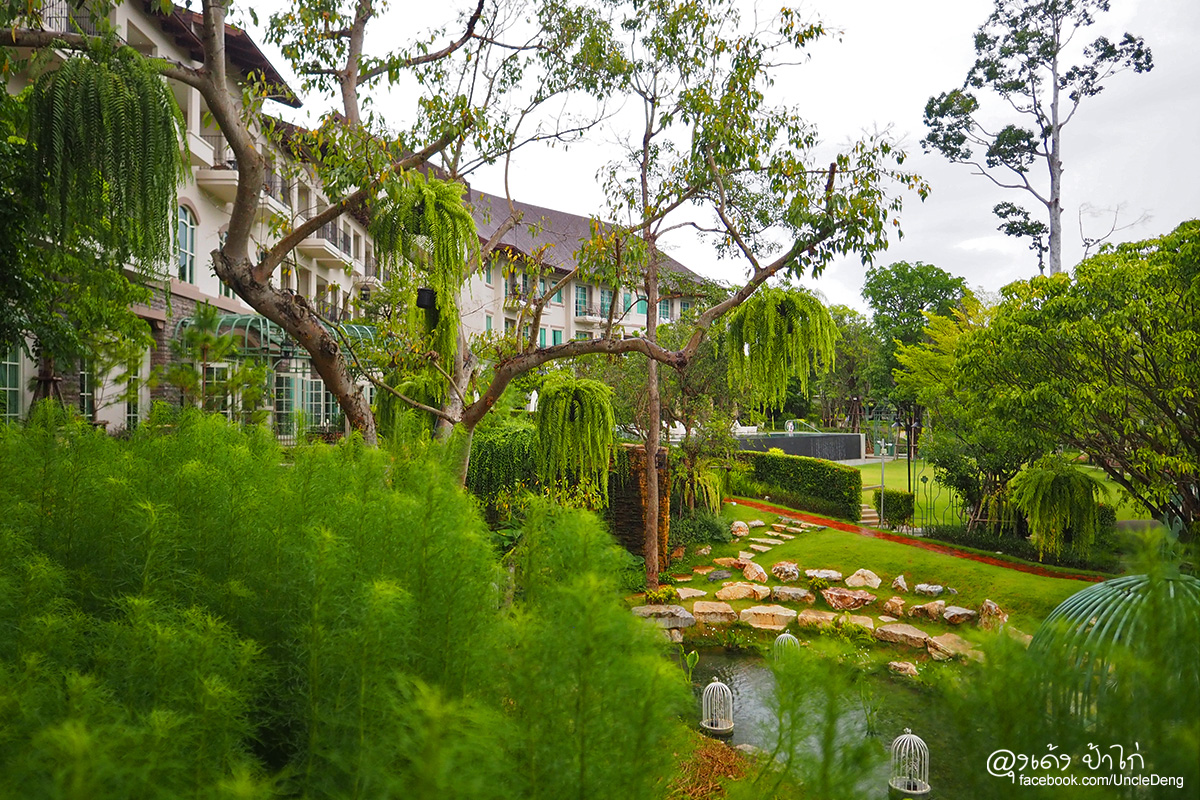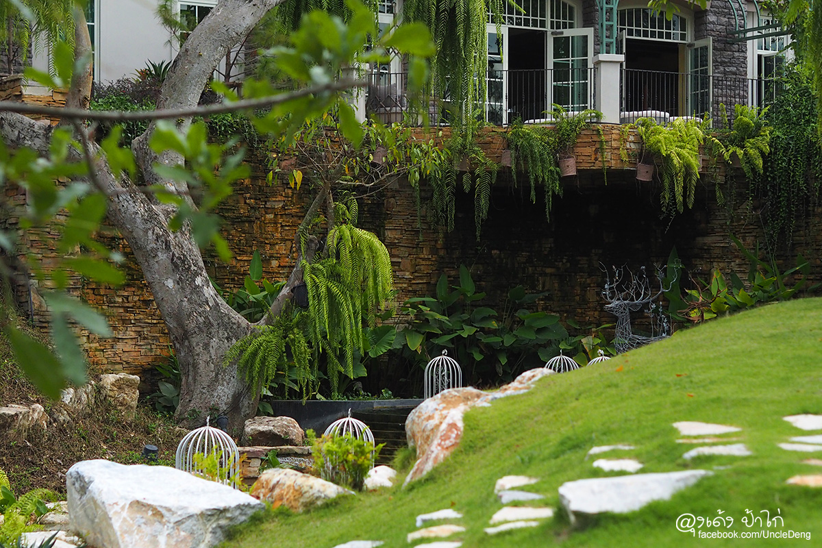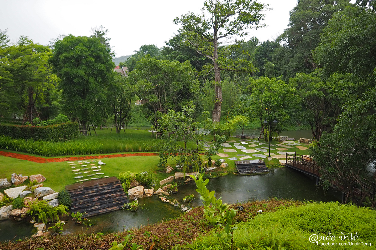 วิธีการจัดสวน กลมกลืนกับสภาพแวดล้อม ทิวเขาสูงใหญ่ ป่าไม้เขียวชอุ่ม ลำน้ำไหลเอื่อย และต้นไม้ใหญ่อายุกว่า 100 ปี ที่อยู่มาก่อนหน้านี้ ก็รักษาไว้ได้เป็นอย่างดี