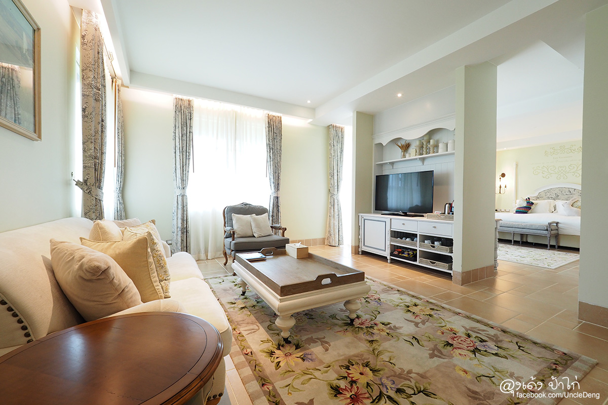 ห้องพัก Suite พักได้สูงสุด 3 คน (ผู้ใหญ่ 2 + เด็กอายุต่ำกว่า 12 ขวบ 1 คน) ราคาห้องวันธรรมดา (จันทร์-พฤหัส) เริ่มต้นที่ 3,600.- เท่านั้น ส่วนวันเสาร์ อาทิตย์ และวันหยุด เริ่มต้นที่ 4,700 บาท พื้นที่ใช้สอย 72 ตรม. จัดว่าเป็นห้องที่ใหญ่มากๆ แบ่งเป็น 3 ส่วน คือ ห้องนั่งเล่น ห้องนอน และห้องน้ำ ราคานี้รวมอาหารเช้า และฟรี Wi-fi ตลอดการเข้าพัก