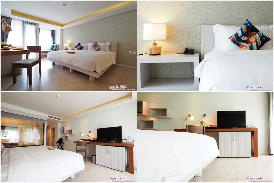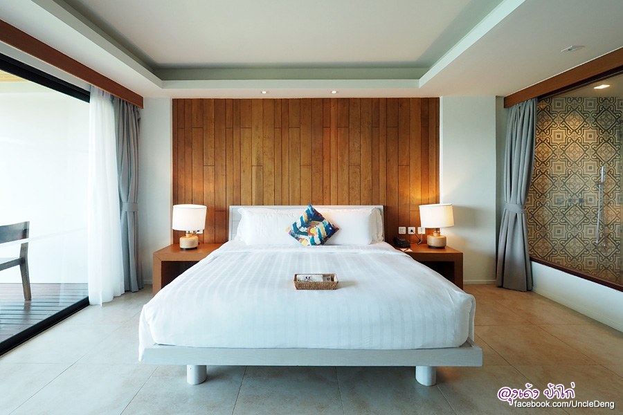 ลุงเด้ง ป้าไก่ และลูกชาย 2 คน พักที่ ห้อง Deluxe Seaview วิวทะเลแบบ Panorama ห้องพักใหญ่ มี Jacuzzi ตั้งอยู่ในห้องนอน เพิ่ม Extra Bed พักได้ถึง 4 คน free wifi ห้องน้ำเป็นกระจกใสพร้อมม่านพรางตา
