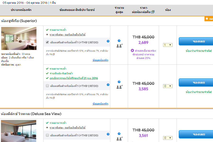 มีหลายช่วงเวลาที่ราคาเริ่มต้นที่ 2,689 บาท รวมอาหารเช้า และ ฟรี Wifi