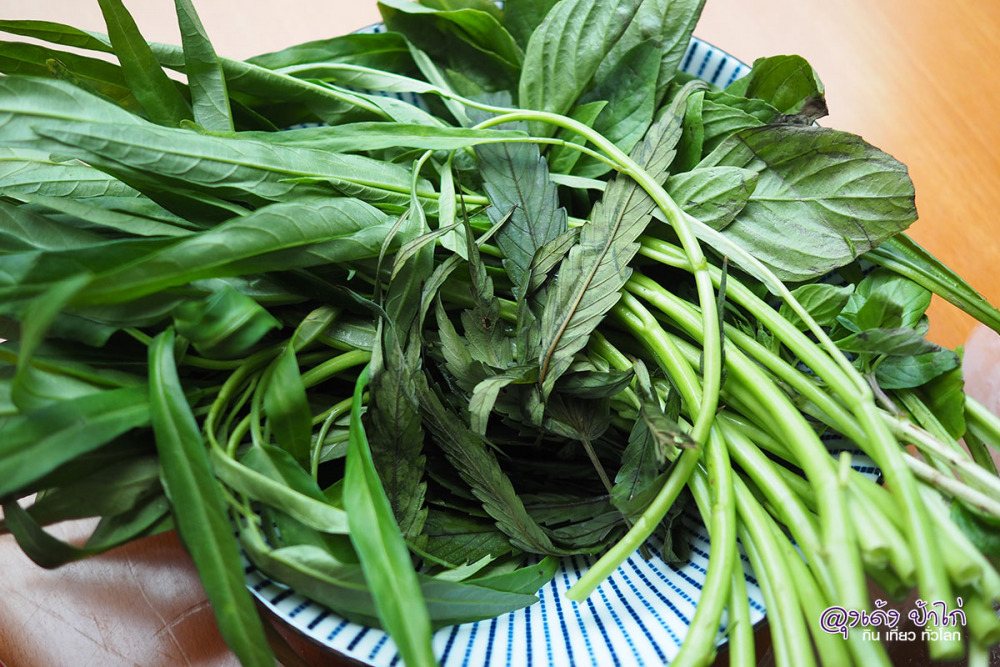ผักบุ้งจีน 100 กรัม - โหระพา 50 กรัม - ผักชีฝรั่ง 50 กรัม
