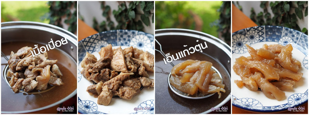 - สามชั้นตุ๋น (เนื้อเปื่อย) 150 กรัม || - เอ็นแก้วตุ๋น 150 กรัม