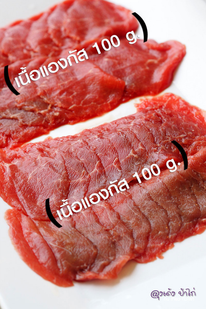 ลุงเด้งป้าไก่ จะแบ่งเนื้อแองกัสสไลด์ มากินครั้งละ 200 กรัม พอหมดก็ไปหยิบเพิ่ม