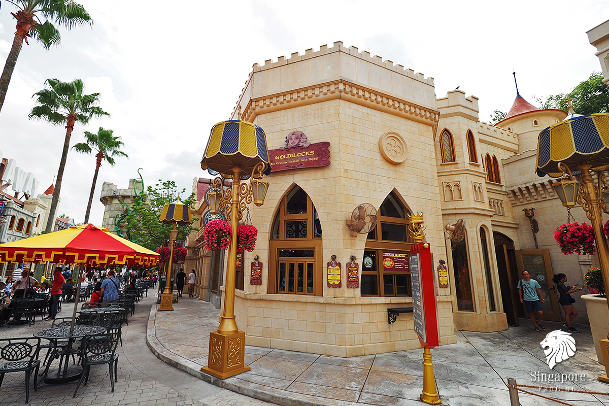 Goldilocks : ร้านนี้ตั้งอยู่ในโซน Far Far Away หลายๆ คนเรียก โซนเชร็ค ตามชื่อการ์ตูนตัวเอกของเรื่อง ร้านนี้เป็นที่ชื่นชอบของเด็กๆ เพราะเป็นร้านขายไก่ทอด และ ไอศกรีม Ben & Jerry’s ice cream และ วาฟเฟิลรูปเชร็ค ที่ใครๆ ก็ต้องมากิน