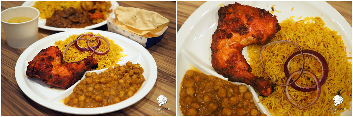 ข้าวหมกไก่ย่าง : Roasted Chicken Biryani จานละ 16 เหรียญ จานเดียวอิ่มเลย ไก่ย่างหอมกลิ่นเครื่องเทศ แกงถั่วรสชาติดี ข้าวเมล็ดร่วน กินอร่อยมาก