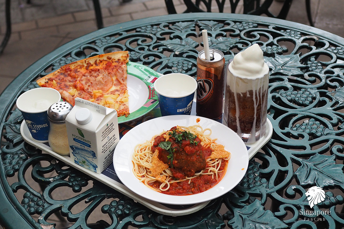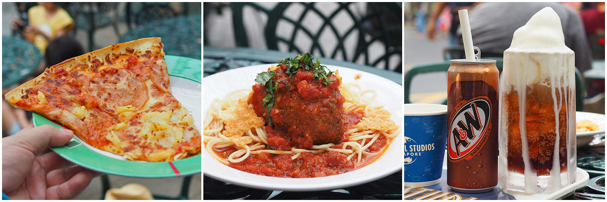 ถ้าลุงเด้งป้าไก่ มากัน 2 คน ก็จะสั่ง Pizza 1 ชิ้น SG$ 11.00 เหรียญ (ชิ้นใหญ่มากครับ) + พาสต้ามีทบอล SG$ 19.00 เหรียญ + A&W รูทเบียร์โฟลท SG$ 7.00 เหรียญ