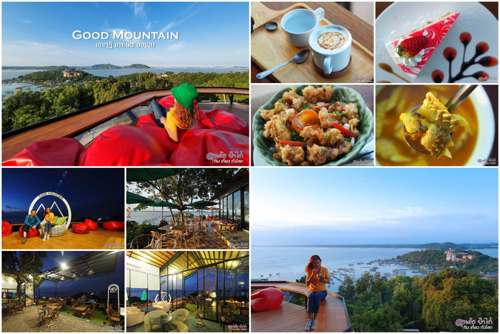 Good Mountain เกาะยอ สงขลา หนึ่งใน ที่กิน สงขลา - บรรยากาศดี วิวสวย อาหารอร่อย ตามคอนเซ็ป “อาหารหลักร้อย วิวหลักล้าน” ที่นี่ชัดเจนที่สุด วิวทะเลสาบสงขลา มองลงมาจากยอดเขากุฏ ที่นี่เหมาะกับสาย ชิลล์ ที่สุด คาเฟ่แห่งนี้ มี 2 บรรยากาศ ภายในร้าน สร้างเหมือนเรือนกระจก ติดแอร์เย็นฉ่ำ แต่ที่นั่งไม่มากเท่าไหร่ เพราะลูกค้าสวยมากจะเน้นนั่งด้านนอกชมวิวสวยๆ 360 องศา