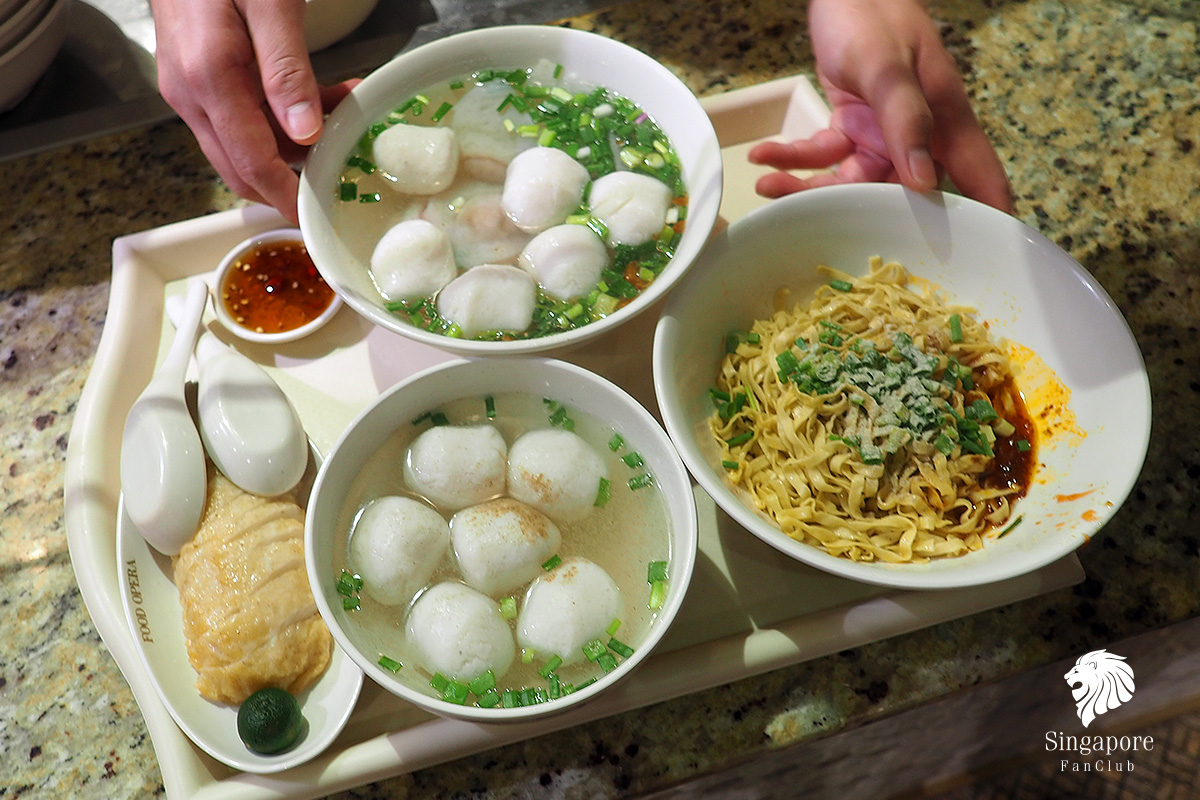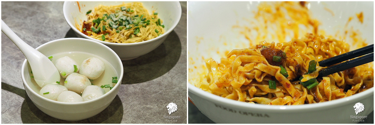 Fish Ball Noodle ( Dry ) ราคา SG$ 5.50 เหรียญ : บะหมี่แห้งลูกชิ้นปลา ความโดดเด่นของ บะหมี่แห้ง สิงคโปร์ คือ ความอร่อยของ น้ำมันหมู กากหมู และ พริกเผา แบบจีน ที่ คลุกยำ รวมกันมาในชาม เป็นความอร่อยที่เป็นเลิศ มากๆ - ลูกชิ้นปลา กับ น้ำซุป แยก ต่างหากมาอีกชาม