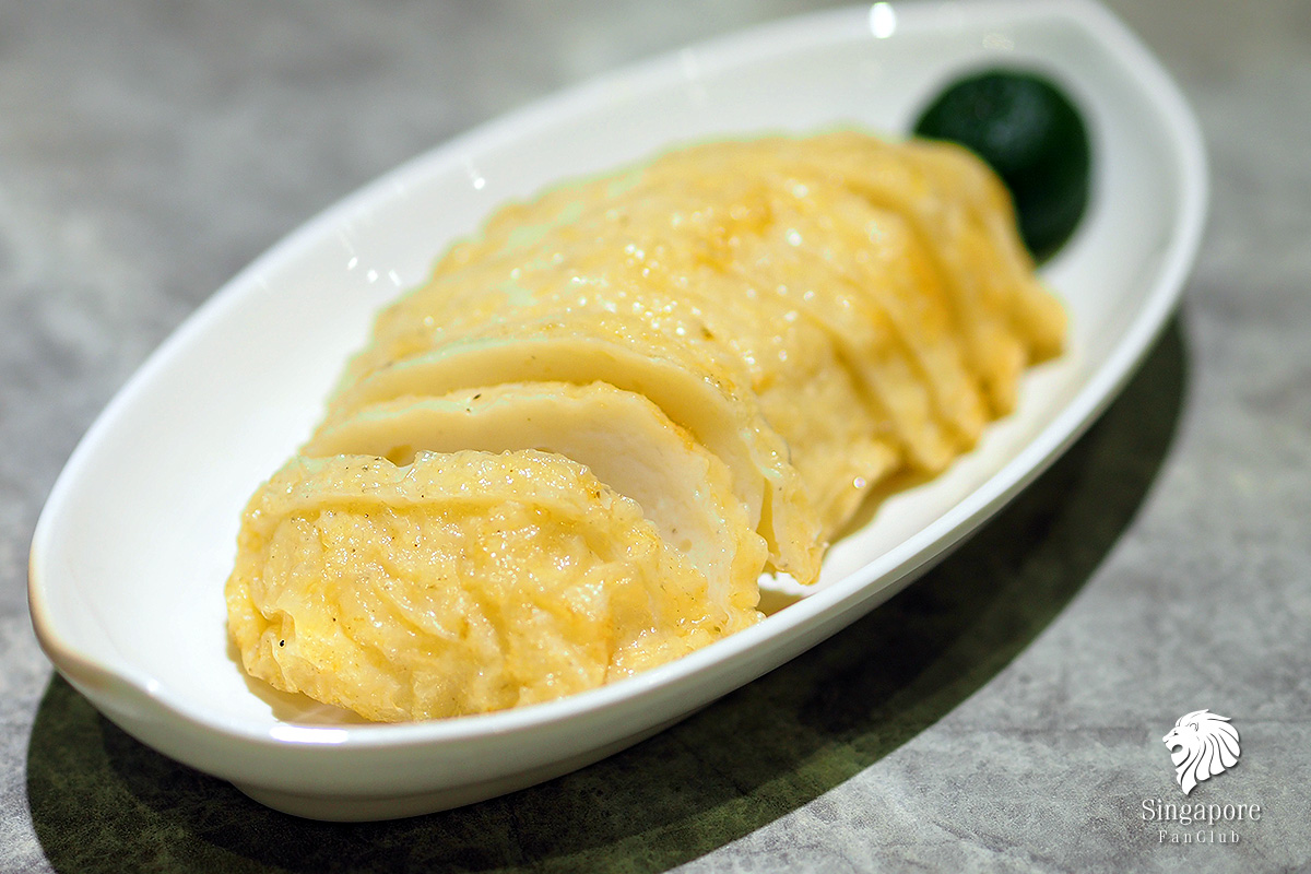 เมนูสุดท้าย ที่ ลุงเด้งป้าไก่ อยากจะแนะนำ คือ Fish Cake ราคา SG$ 3.00 เหรียญ : บ้านเราเรียก ฮื่อก๊วย หรือ ฮือก้วย เรียกให้ง่ายๆ ก็คือ " ปลาเส้น " นี่แหละครับ เสิร์ฟ มาพร้อมกับ คาราเมนซี่ มะนาวฟิลิปปินส์