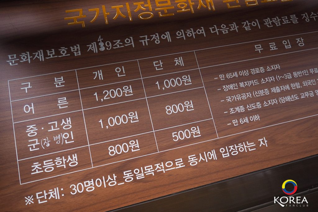 ค่าเข้าชม : ผู้ใหญ่ 1,200 วอน / เด็ก 1,000 วอน
