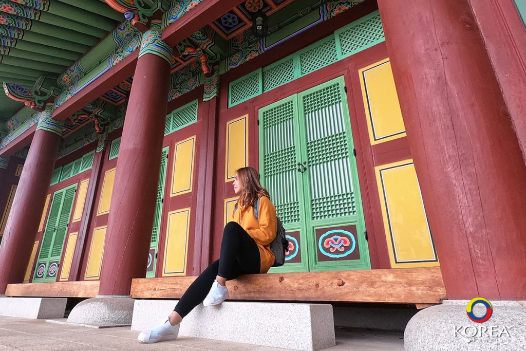 เมื่อเดินผ่านหอคอย Beomjongru ก็จะเข้าสู่ ศาลา Anyangmun Pavillion ซึ่งมีความหมายว่า “หนทางสู่สวรรค์" (ภาพนี้ ป้าไก่ เดินลอดผ่าน Anyangmun Pavillion)