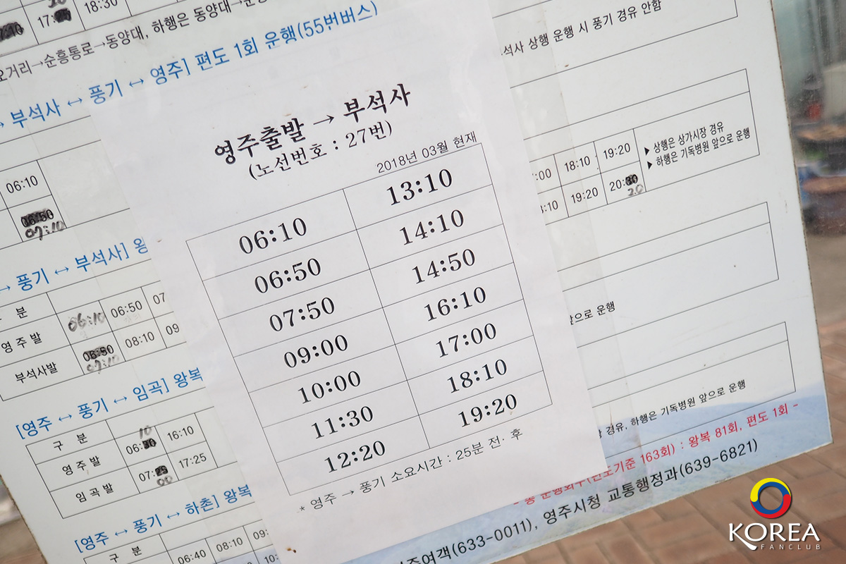 การเดินทาง จาก สถานี Punggi Station -> วัดบูซอคซา (Buseoksa Temple)