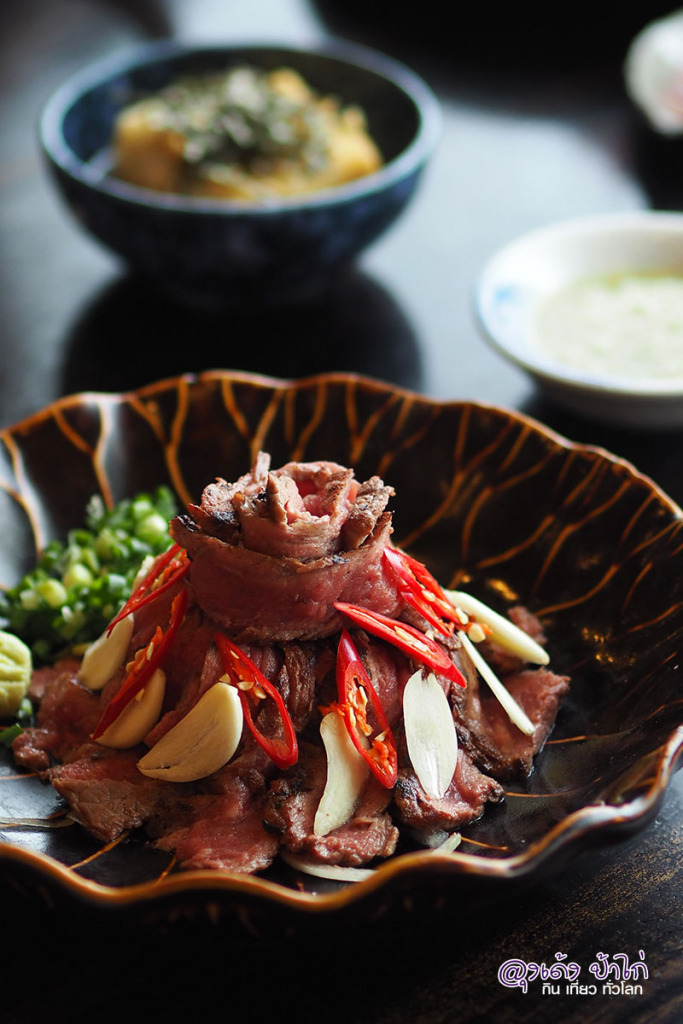 ยำเนื้อวาซาบิ789 : จานนี้ 359.- : ทางร้านใช้ เนื้อวากิว สันนอก A3 ย่างสุกระดับ Medium หอมกลิ่นเนื้อย่าง เสิร์ฟพร้อมกระเทียมสดผ่านบาง พริกสด และต้นหอม ... เสริมรสจี๊ดจ๊าด ด้วย น้ำจิ้มแซ่บสามรสผสมวาซาบิ ได้ความแซ่บแบบขึ้นจมูก ถูกใจ สายญี่ปุ่นรสแซ่บ 100%