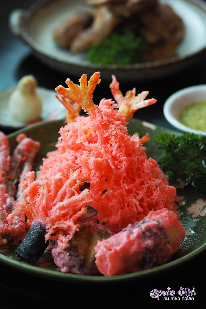 กุ้งเทมปุระซากุระ 259.- : จานที่สาวๆ และเด็กๆ ชอบกันมาก ใช้กุ้งเนื้อแน่น ทอดดี ไม่อมน้ำมัน เสิร์ฟพร้อมกับผัก และ เห็ดชุบแป้งทอด - ราคาไม่แรง สั่งกินได้เลย -