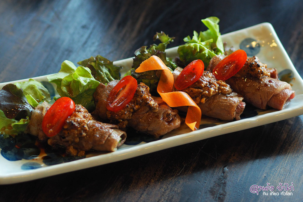 โรลเนื้อซอสฟัวกราส์ 549.- : เนื้อวากิว สันนอก A3 แผ่นใหญ่ นุ่ม หอม มัน เคี้ยวอร่อย เสิร์ฟพร้อมผักสด Topping ด้วยซอสฟัวกราส์ ให้รสชาติ หอม หวาน เค็ม มัน รสชาติของเนื้อวัว และฟัวกราส์ เสริมรสกันได้อย่างลงตัว