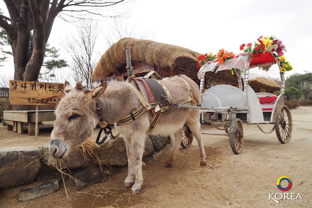ภายในหมู่บ้านยังมีบริการนั่งรถลา ชมเมืองโบราณด้วยนะครับ คนละ 5,000 วอน / หรือจะซื้อแครอทให้ลากิน ก็ถ้วยละ 1,000 วอน